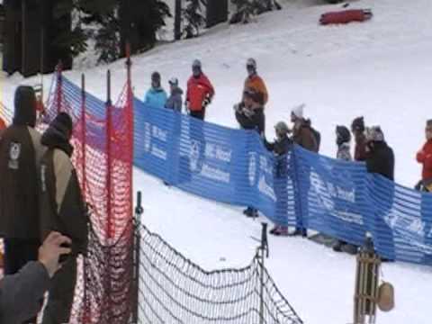 Pizza Delivery Kona }}- Major crash at the 2009 Sno-Kona pond skim competition at Mt. Hood Meadows.
